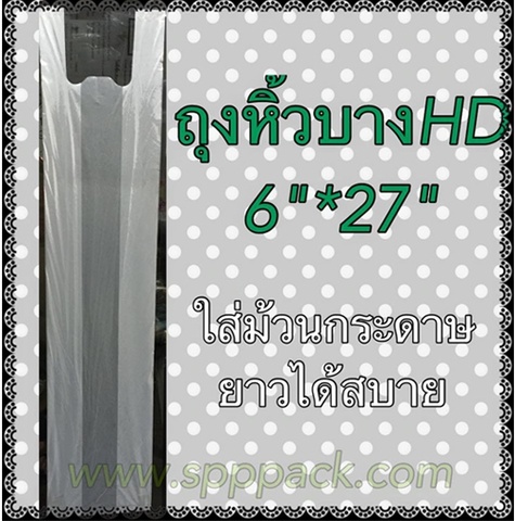 ถุงหิ้วบางแบบยาว ขนาด 6"x27" แพค 1 กก