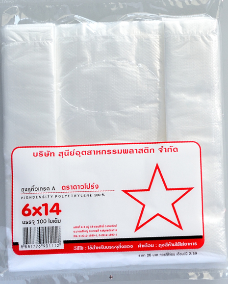 ถุงหิ้วHD 100ใบ ตราดาว"ดาวโปร่ง"