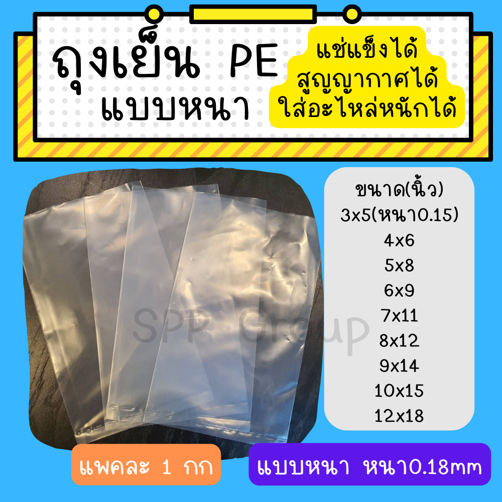 ถุงเย็นPE แบบหนาอย่างดี Food grade ใส่อาหารได้ ใส่แช่แข็ง สูญญากาศได้ ใส่อะไหล่รถหนักได้ แพค1กก วัตถุดิบ : ผลิตจากเม็ดพลาสติก โพลิเอสทิลีน ลักษณะ : เนื้อถุงใส มีความเหนียวและยืดหยุ่นได้ดี คุณสมบัติ : ทนต่ออุณหภูมิที่ต่ำกว่า 0°C ทนต่อแรงกระแทก ก้นถุงแข็งแรง รับน้ำหนักได้ดี สามารถเข้าช่องเย็น และแช่แข็งได้ วิธีใช้และวัตถุประสงค์ในการใช้ : เหมาะสำหรับใส่อาหารประเภทแช่เย็นเช่น เนื้อแช่แข็ง น้ำหวานใส่น้ำแข็ง ขนาดที่มีจำหน่าย (นิ้ว) 3x5 4x6 5x8 6x9 7x11 8x12 9x14 10x15 12x18 หากต้องการขนาดอื่นๆสามารถสั่งทำได้นะคะ ทักมาได้เลย โรงงานผลิตเอง