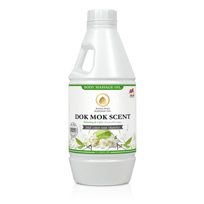 น้ำมันนวดตัววังโพธิ กลิ่นดอกโมก ขนาด 1 ลิตร Wangpho Massage Oil Dok-Mok Scent
