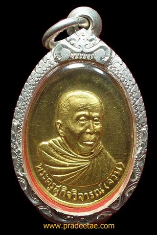 เหรียญหลวงพ่อจวน วัดไก่เตี้ย สุพรรณบุรี รุ่นแรก เนื้อทองคำ เลี่ยมเงิน(พร้อมเช่า)