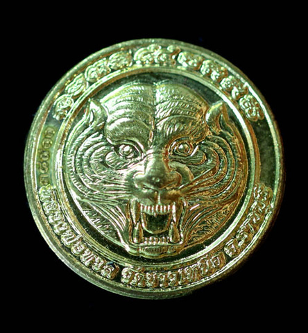 เหรียญกระดุมเสือหลวงพ่อหวล วัดชาวเหนือ จ.ราชบุรี กะไหล่ทอง