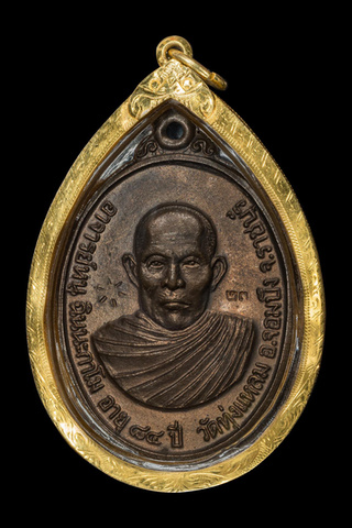 เหรียญหลวงปู่หนู วัดทุ่งแหลม ฉลองอายุ 84 ปี เนื้อนวะ ตอกใหญ่ เลี่ยมทองคำ