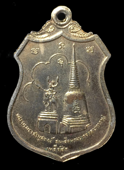 เหรียญเผด็จศึก สมเด็จพระนเรศวรมหาราช หลัง ภปร. ปี16 ในหลวงรัชการที่ 9 ทรงเสด็จพระราชดำเนินตัดลูกนิมิต ณ วัดดอนเจดีย์ (พิธีสุดยิ่งใหญ่ 9 ยอดเกจิ ของเมืองสุพรรณ อาทิหลวงพ่อมุ่ย ปลุกเสก)