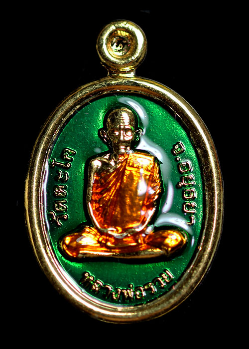 เหรียญเม็ดแตงหลวงพ่อรวย วัดตะโก รุ่นอายุวัฒนมงคล 94 เนื้อทองแดง ลงยา(สีเขียว)