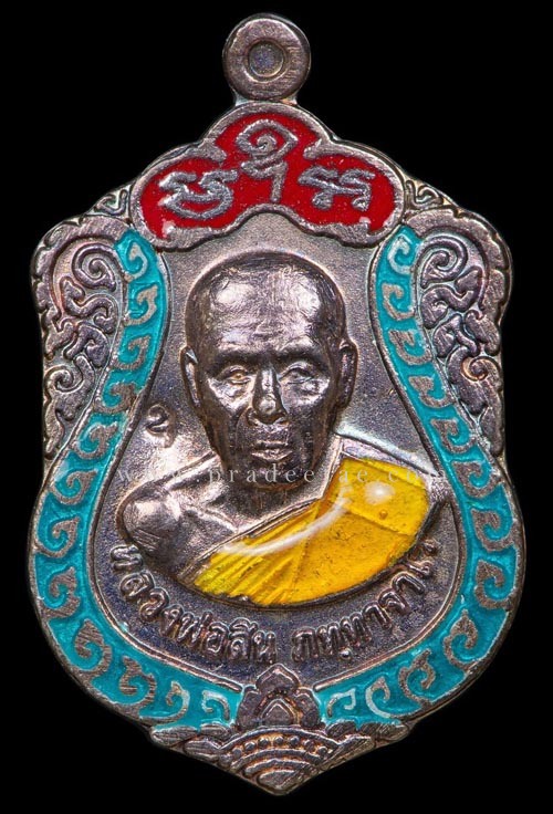 เหรียญเสมาเล็ก ลพ.สิน วัดละหารใหญ่ เนื้อเงินลงยา พร้อมกล่อง