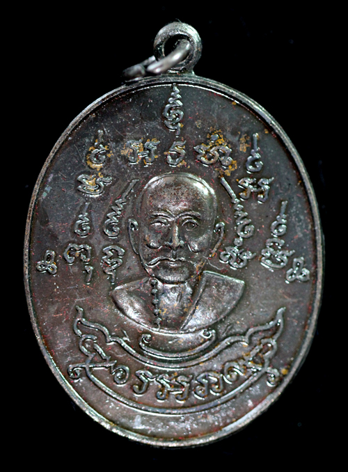 เหรียญหลวงปู่หรุ่น เก้ายอด วัดอัมพวัน (ย้อน) ทองแดงรมดำ