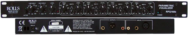 The RPQ160b is a 4 band parametric equalizer with high and low shelving filters and is capable of processing frequencies from 20Cy to 20KCy.