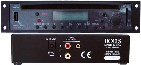 The HR72 is a 1/2 rack space CD/MP3/USB/SD/MMC player. The unit is ideal for installation applications like restaurants, clubs, schools, churches, or aerobic studios to name a few.
