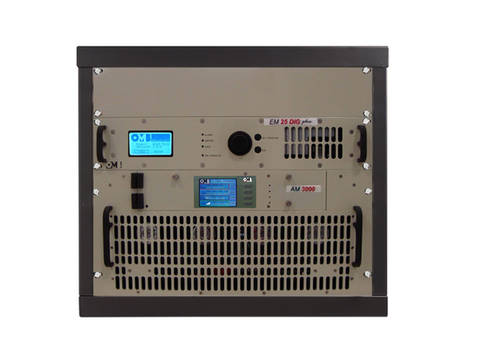 The new EM 3000 HE DIG PLUS has been created by the OMB center for the development of high efficiency transmitters. It consists of the FMA 3000 HE power amplifier which has 72% efficiency and the new EM 25 DIG PLUS transmitter.