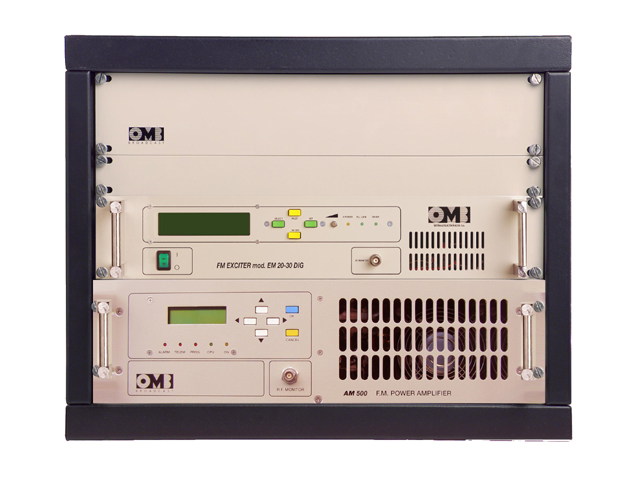 The EM 500 is a 500W FM transmitter made up of the EM 25 DIG PLUS exciter (or EM 20/30 exciter) and the AM 500 FM amplifier.