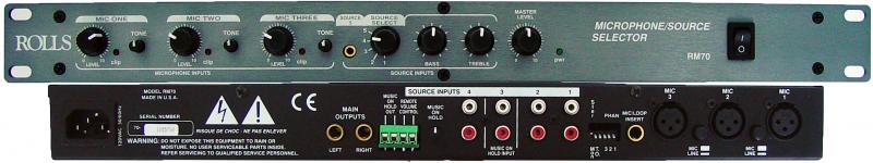 The RM70 is a single rack space mixer designed for the install/contractor market. It is ideal for small clubs, restaurants, churches, or schools. The unit mixes three balanced microphones with five stereo sources to mono or stereo balanced outputs.