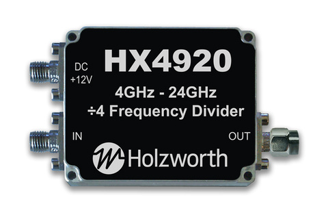 The Holzworth HX4920 Frequency Divider is a digital divide-by-4 architecture covering input signals of 4GHz to 24GHz while maintaining signal integrity. The HX4920 also incorporates a low phase noise amplification circuit to maintain the phase noise of an RF signal at useable power levels. Originally designed to extend the phase noise measurement capability of the HA7062C Phase Noise Analyzer, the HX4920 exhibits a typical residual (additive) phase noise floor of -136dBc/Hz at 10GHz, 10kHz offset.