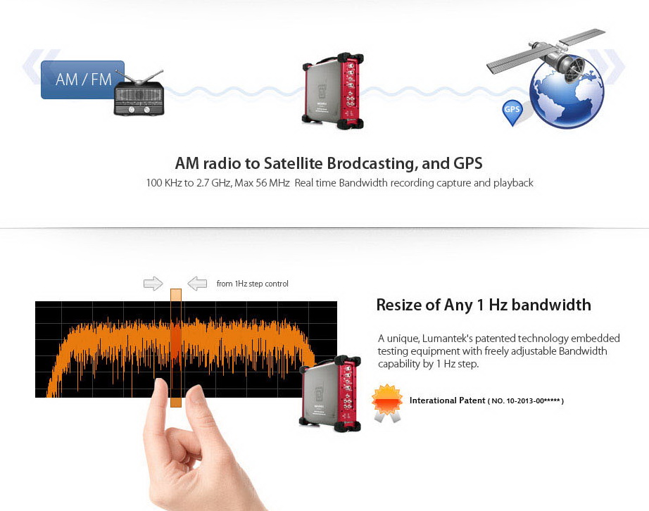 RF Capture & Playback System Covering frequency from 0.1MHZ to 2.7GHZ,Max.56 MHz bandwidth recording