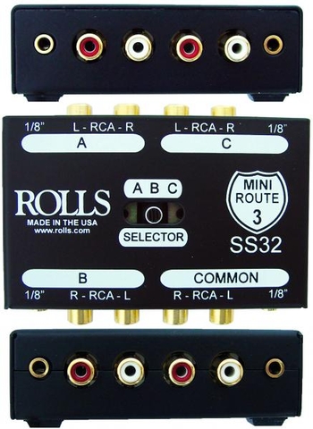The SS32 is a passive stereo or mono signal switching device designed to route a single signal to three outputs one at a time, or three input signals to a single output. All Contacts are make before break.
