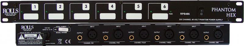 The RPB486 powers up to 6 condenser microphones with 48 volts of ultra clean phantom power. The outputs are 1/4" Tip-Ring-Sleeve balanced for easy connection to a digital multi-track recorder.