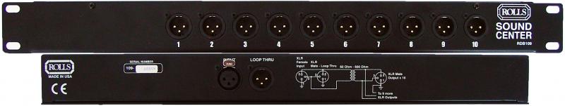 The RDB109 is an audio distribution device with a single balanced XLR line-level Input, distributed via transformer isolation to ten balanced XLR Outputs.
