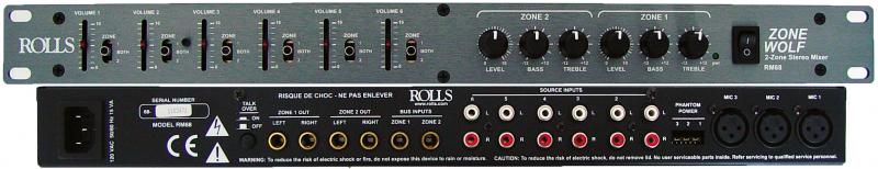 The RM68 is designed to mix up to three microphones with three stereo sources, and send them in any combination to two separate zones.
